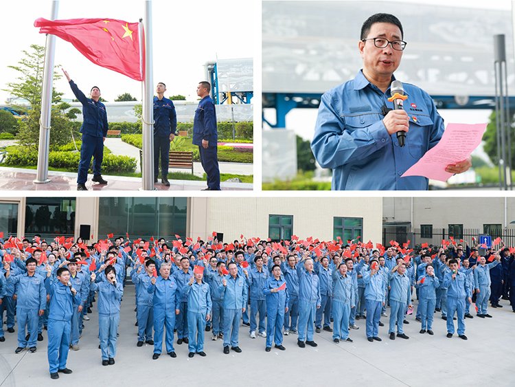 上午8时,升国旗仪式正式开始。全体人员列队肃立,身姿挺拔的升旗手、护旗手昂首阔步护送国旗进场。“升国旗、唱国歌!”随着嘹亮的口令响起,现场员工以庄严的注目礼追随着国旗冉冉升起,饱含深情齐唱国歌。鲜艳的五星红旗迎风飘扬,每位员工的心中都充满了对祖国的无限热爱和深深祝福。