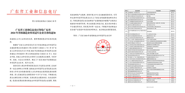 巨正源科技公司荣获“广东省级制造业单项冠军企业”称号