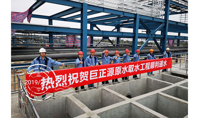 春节假期,巨正源科技公司坚守项目现场抢工期,加班加点推进聚丙烯项目施工进度。2月11日上午,随着科技公司总经理、项目建设团队负责人李汉初一声令下,距离项目工地6公里之外淡水河畔的原水取水泵启动,奔涌的水流源源不断注入聚丙烯项目南区原水预处理池,标志着原水取水工程顺利打通,成功通水。