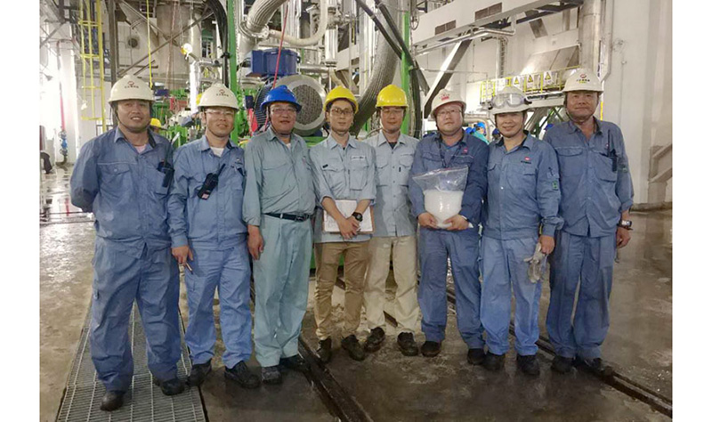4月15日以来,聚丙烯装置试车参战人员与JSW等多方技术人员一起,从油系统清洗开始,经过主电机试车、齿轮箱试车、安装螺杆、热油运行、粉料填充等系列工作,克服了各种困难,在较短时间内完成了试车工作。