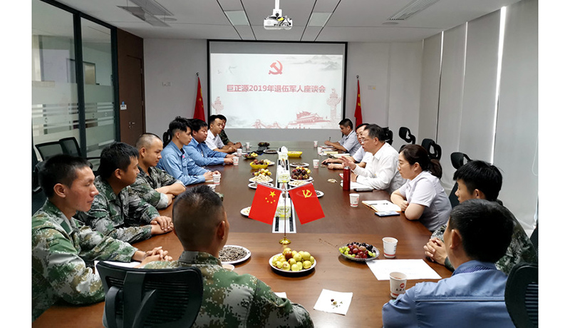 为庆祝中国人民解放军建军92周年,8月1日上午,巨正源公司召开2019年“八一”建军节退伍军人座谈会,公司董事长曾一平、党总支书记张宝业以及全体退伍军人参加了座谈会
