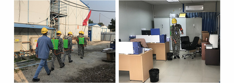 同时,巨正源科技公司青年战疫突击队利用周末时间对中石化四建、甬港工程、中化三建及公司板房办公区、公共区域进行大规模预防性消毒。队员们背着消毒喷雾器,从室外到室内,从地面到扶手,不放过一处死角,不留下一处隐患,用实际行动彰显了青年战疫突击队的担当和使用,以昂扬向上奋斗姿态投身到疫情防控工作中,将落实疫情防控措施到位。