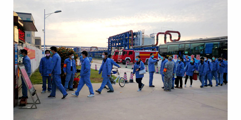 为确保驻点巨正源聚丙烯项目的施工单位做好疫情防控工作及复工工作,在队长袁浩带领下,巨正源科技公司青年战疫突击队对岳阳建华、山东鲁阳等施工单位进行疫情防控工作检查,落实员工返莞、隔离措施、健康监测、体温检测、防疫物资使用、宿舍区域环境卫生等情况,并主动协助岳阳建华、山东鲁阳做好宿舍预防性消毒工作。