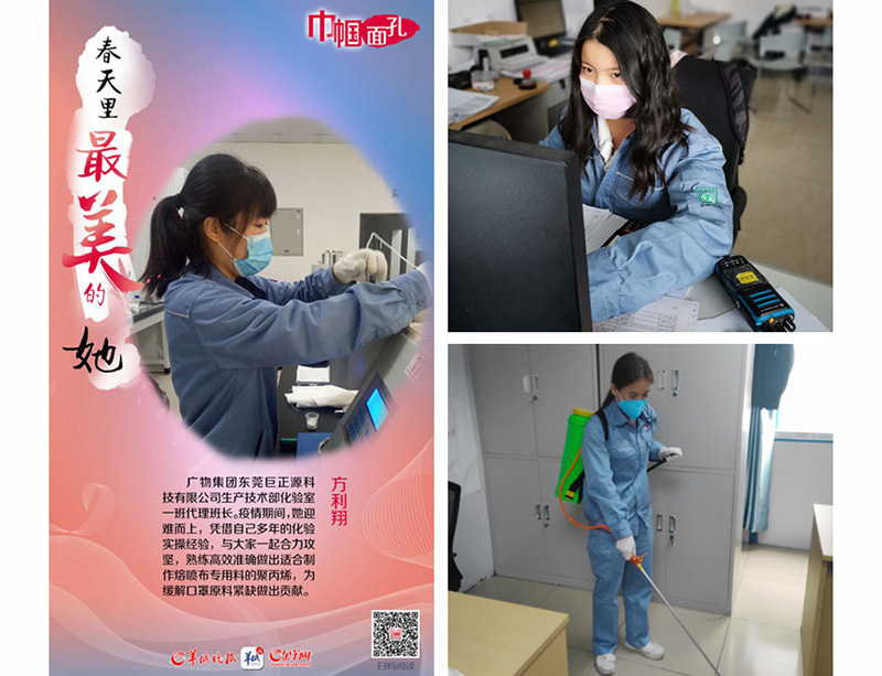 积极值班值守、仓储增容、发货提速、参与熔喷布粒料开发……疫情防控期间,巨正源科技公司一群女职工坚守在岗位上,积极投身到公司转产Y25L、Y35L、Y40L等高熔指医用纤维料和试产熔喷布专用料中去,她们用不让须眉的坚毅,以实际行动展现了女职工敬岗爱业、自强不息的风采,为公司坚决打赢疫情防控阻击战和有序推动复工复产贡献巾帼力量。