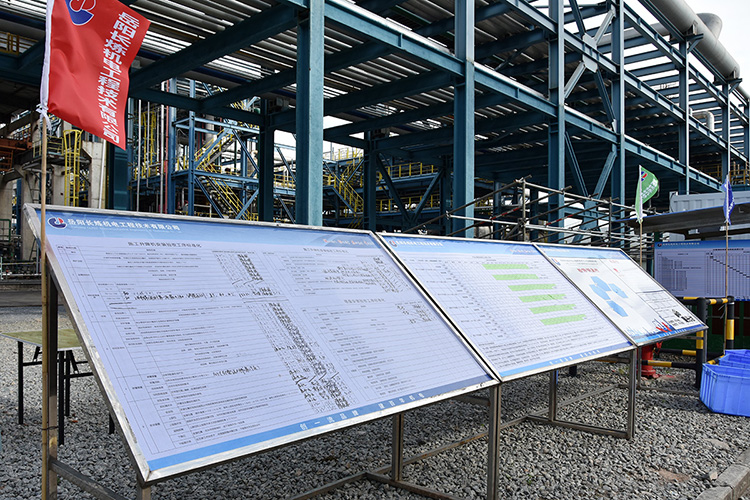 在检修现场,不仅张贴安全横幅标语、拉警戒线、挂警示牌,还设立了检修作业展板,内容涵盖检修组织网络、重点项目风险管控网格化管理图、网络统筹图、检修销项表以及安全文明生产看板,检修责任分工清晰可见、项目销项进度一目了然、风险明细一清二楚。一系列的可视化安全措施,有效规范检维修人员的安全行为。