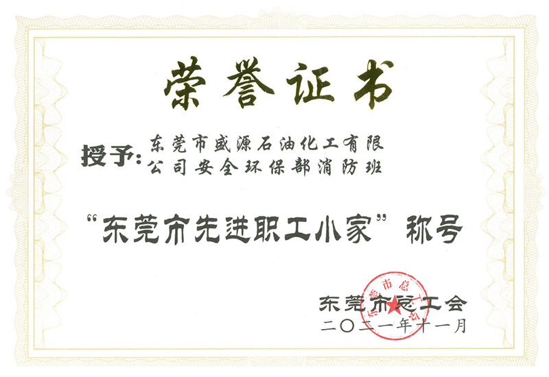 近日,巨正源所属盛源石化公司安全环保部消防班被东莞市总工会授予“东莞市先进职工小家”荣誉称号。